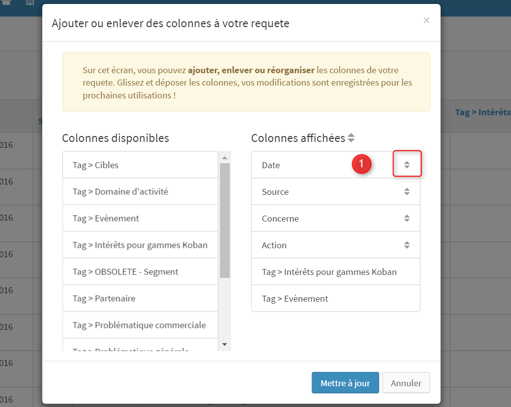 2/ Dans le pop up, vous voyez le champ date apparaître dans la colonne de droite :