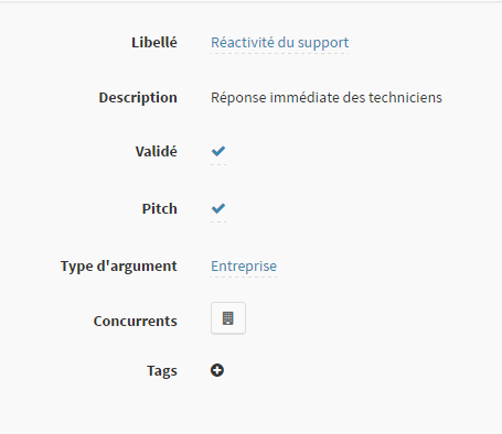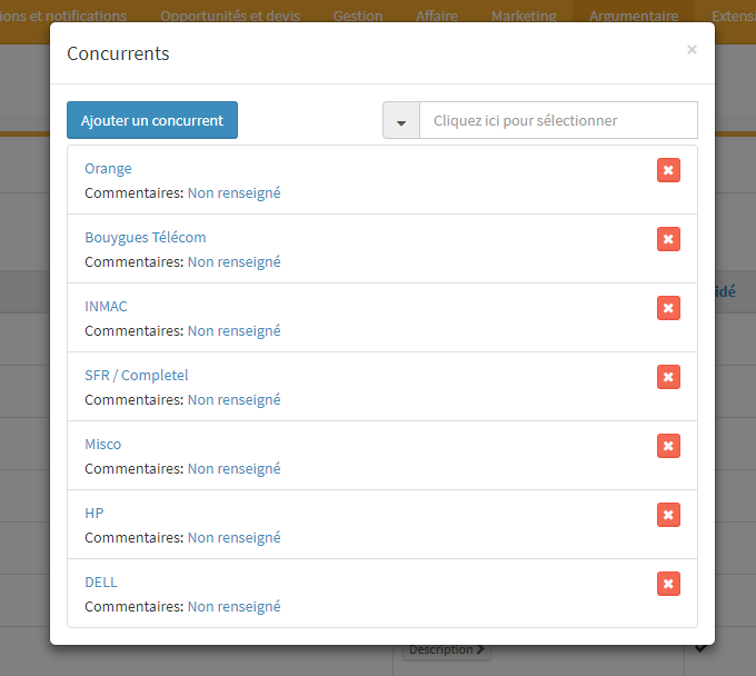 - Bouton vous permettant de visualiser les concurrents ayant été en relation avec cet argument. Vous pouvez également associé un concurrent manuellement en cliquant sur "Ajouter un concurrent"