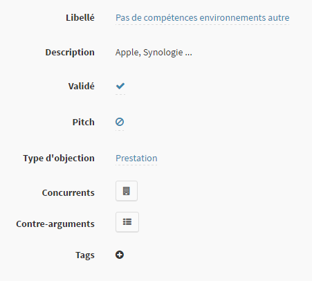 - Description - Non obligatoire mais fortement recommandé. Cela va donner plus d'informations aux commerciaux lorsqu'ils seront en présence de cette objection.