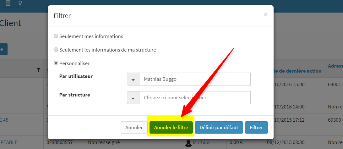 1/ Paramétrer le filtre par utilisateur