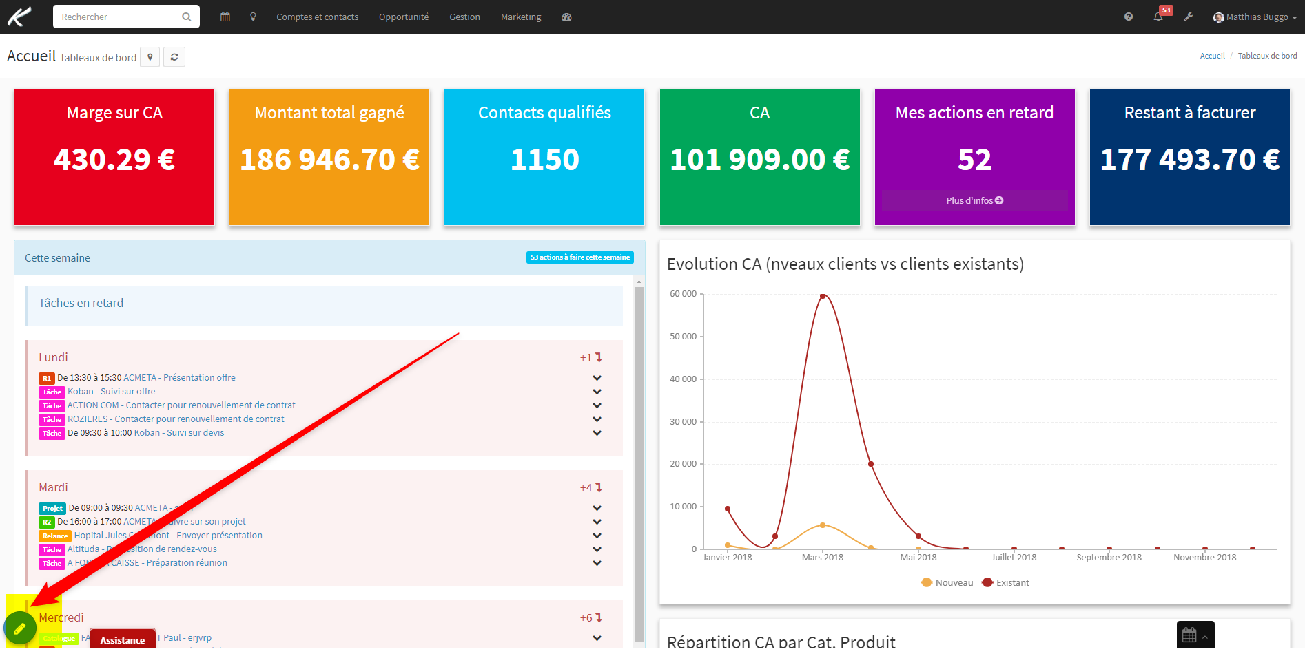 Nous allons maintenant décider de ne plus afficher un widget. Ici, nous décidons de masquer le widget Chiffre Flash de la Marge sur CA