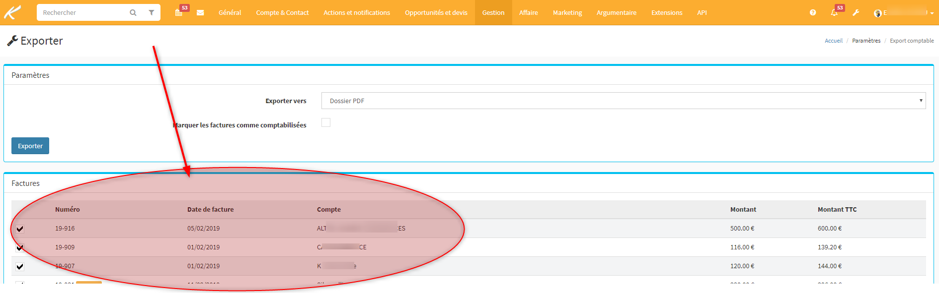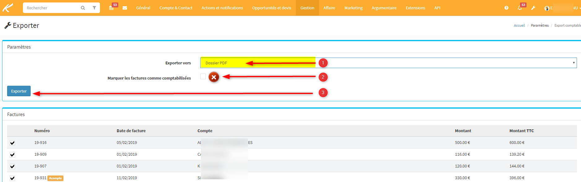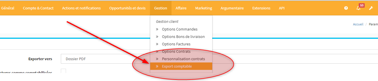 Rendez-vous dans Paramètres > Gestion > Export comptable