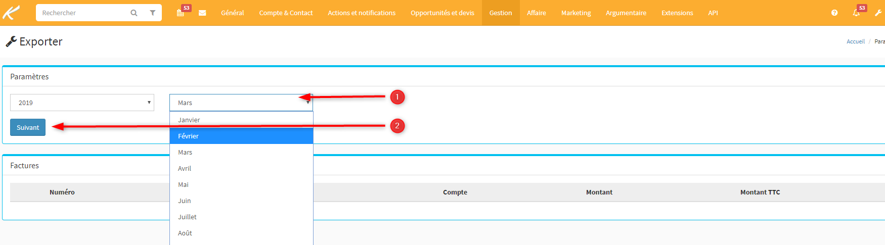 - 1 - Sélectionnez dans la liste déroulante le mois que vous souhaitez exporter