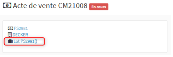 Lorsque le lot passe à l'étape acté, la commande est alors générée automatiquement, son numéro apparait alors à droite du libellé de votre lot.