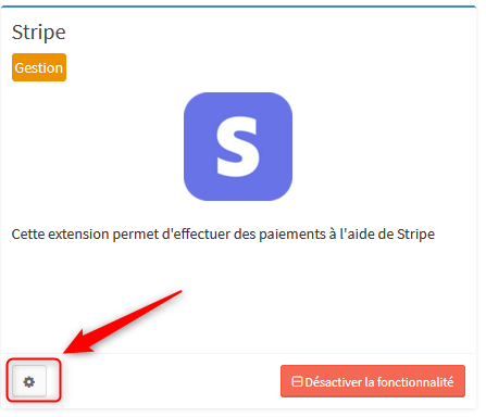 Pour activer ce plugin, il vous suffit d'aller dans les paramétrages puis Extensions > Plugins et de cliquer sur le bouton ''Activer la fonctionnalité'' au niveau du plugin ''Stripe''