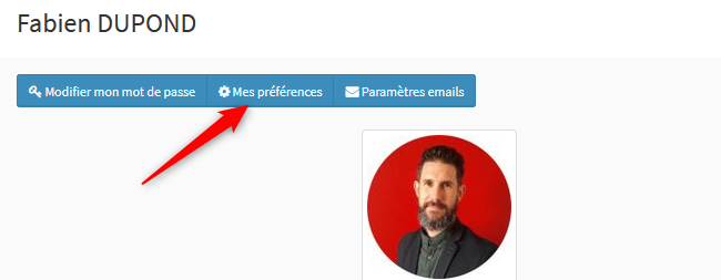 Pour accéder au paramétrage de l'envoi de cet e-mail d'alerte, dans le menu haut de Koban, cliquez sur l'icône utilisateur à côté de laquelle votre nom est inscrit.